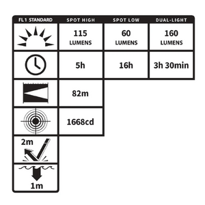 Features cETLus, ATEX, INMETRO, UKCA and IECEx listed Intrinsically SafeLED technologyHigh/low-brightness spotlight, high/low-brightness floodlight & Dual-Lightƒ?›Focused spotlight beam for distance illuminationWide unfocused floodlight beam for close-up illuminationEngineered polymer housingDual switches located on top of lightAdjustable ratchet tilt headNon-slip elastic head strapHeavy-duty rubber strap for hard hat applicationsWaterproofImpact & chemical resistant3 AAA alkaline batteries (included)